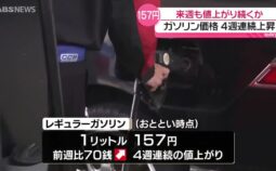 憤まんニュース 【速報】ガソリン157円10銭、2週連続値上がり