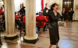 憤まんニュース 高市首相 バイデン前大統領“揶揄”したホワイトハウス展示物に指さして笑顔…トランプ氏への“同調”ムーブが物議