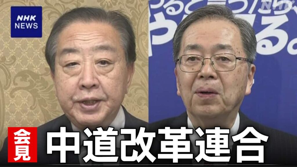 【ライブ】立憲民主党・公明党の新党 名称は中道改革連合 野田代表と斉藤代表が記者会見 | NHKニュース | 衆議院選挙、選挙、国会