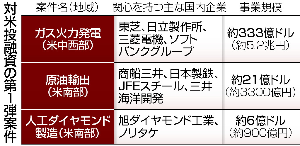 1: 蚤の市 ★ 2026/03/20(金) 16:16:08.01 ID:tz750Wkj9日米両政府は19日、関税合意に基づく5500億ドル(約87兆円)の対米投融資の対象プロジェクトの第2弾を発表した。第1弾とあわせて日本が確約した投融資額は総額17兆円を超えた。米と貿易合意済みの国・地域のなかで日本の先行ぶりが際立つが、企業や金融機関の間では急ピッチの検討に不安もくすぶる。