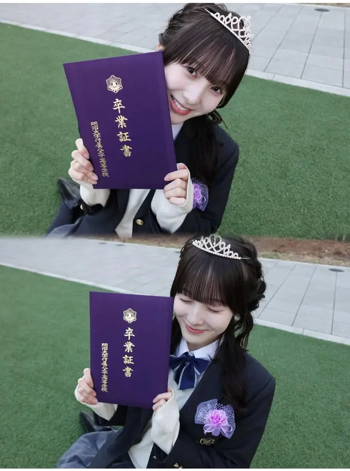 「高校を卒業しました」とつづり、卒業証書を手にして、ティアラを着けた制服姿の笑顔の写真を公開した。