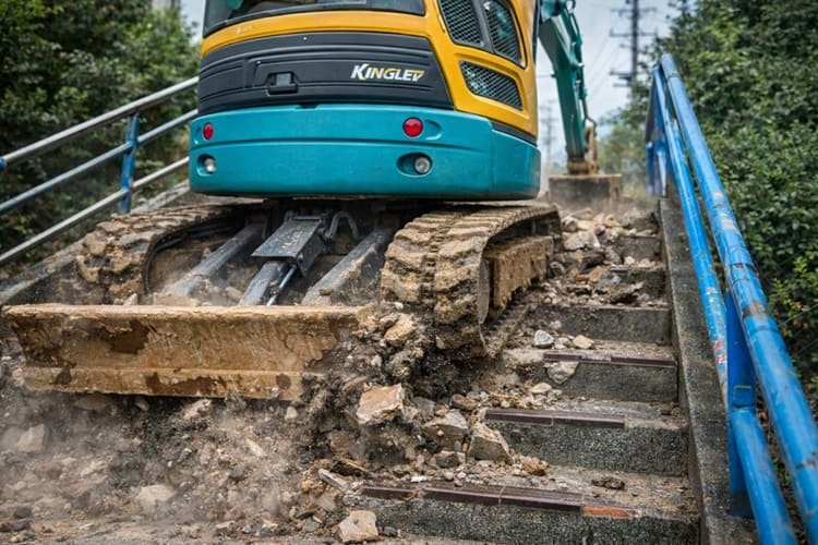 外国人作業員、都内公道の階段を重機で走行・破壊する姿が「信じられない」と物議 区は「原状回復を指示した」と回答 – Sirabee –