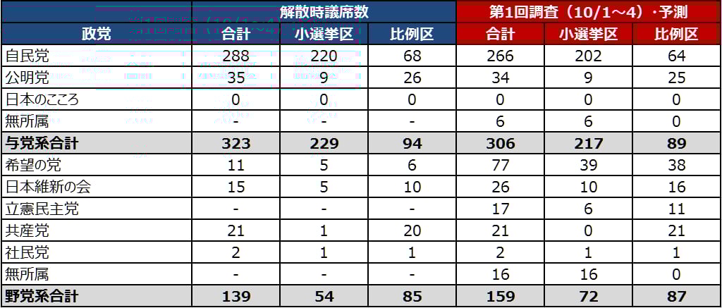 つまり、自民党は単独でも過半数(233議席)をうかがう勢いで、連立を組む日本維新の会が30議席超を獲得するという予想と合わせると、与党で300議席に届くかもしれない情勢なのだ。