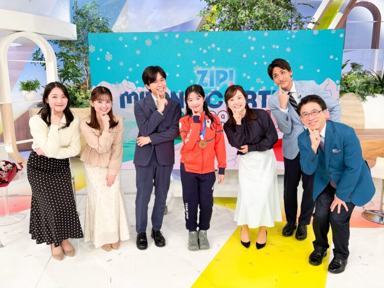 1: ひかり ★ 2026/02/26(木) 14:55:48.73 ID:Nj5UDbuD9ミラノ・コルティナ五輪女子フィギュア銅メダルの中井亜美(17)が26日、日本テレビ系「ZIP!」に出演した。出演後には出演者全員で話題となった首傾げポーズをする姿が公式Xに投稿され反響を呼んだ。
