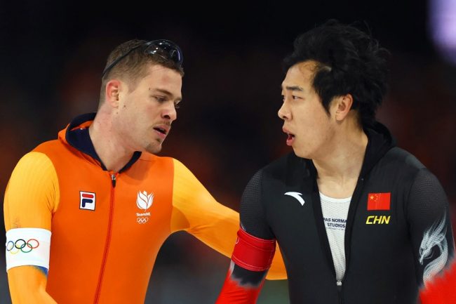オランダ金メダル候補が激怒「メダルを奪われた」中国選手と接触し失速、表彰台逃す 鬼の形相で背中を叩き抗議 会場騒然 失格の中国選手は謝罪も「故意ではない」 スピードスケート男子1000m
