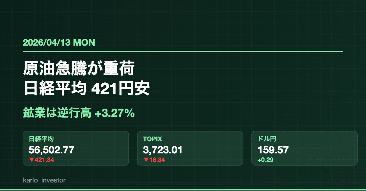 【トリプル安】日経平均 421円安の5万6502円で取引終了 米イラン協議が合意至らず売り注文  1ドル=159円台後半 長期金利が一時2.49%