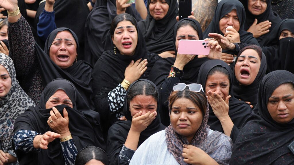 イランメディアによると、この攻撃で死亡した児童ら少なくとも165人の葬儀が執り行われた。