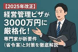 経営・管理ビザの取得要件は、資本金が500万円以上から3000万円以上に引き上げられ、1人以上の常勤職員の雇用が義務化される。経験や学歴の要件も追加され、「経営・管理経験3年以上」か「経営・管理に関する修士相当の学位」を求める方針だ。