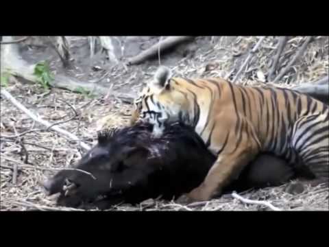その虎の倍ぐらい体重あるクマは飼育豚にも負ける