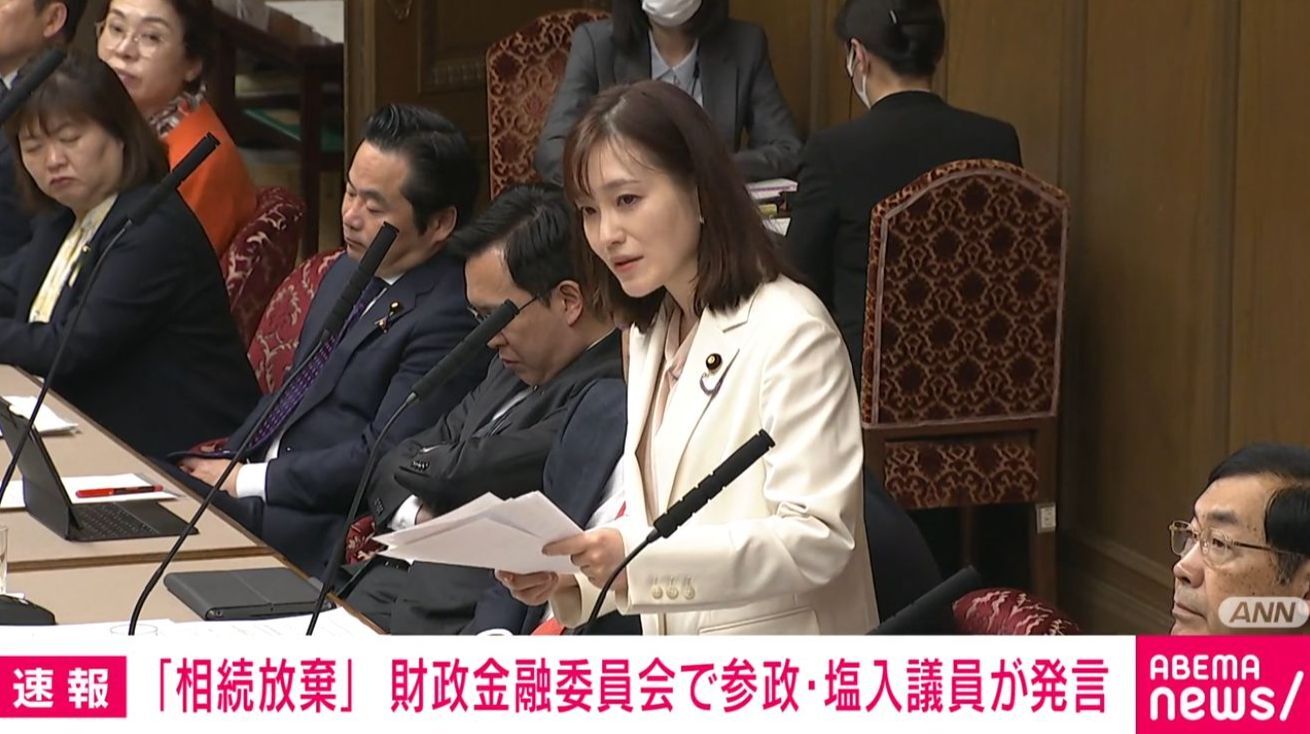 9日の参議院財政金融委員会で、参政党の塩入清香議員が相続税の問題を取り上げた。塩入議員は歌手としての「さや」の名前で参院選に出馬、当選後は本名で政治活動を行っている。