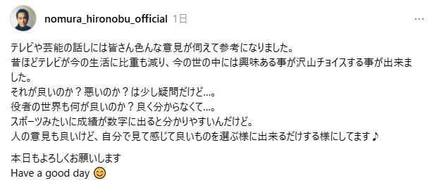 続く投稿では「昔ほどテレビが今の生活に比重も減り、今の世の中には興味ある事が沢山チョイスする事が出来ました。それが良いのか?悪いのか?は少し疑問だけど…」と、“テレビ離れ”が進む現状に思いをめぐらせつつ、