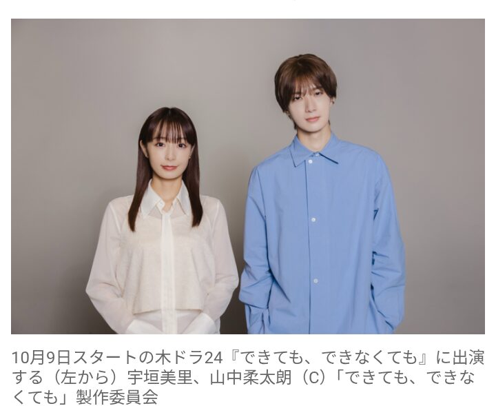 タレントの宇垣美里が、10月9日スタートのテレ東木ドラ24『できても、できなくても』(毎週木曜 深0:30)で連ドラ単独初主演を務めることが、12日に発表された。