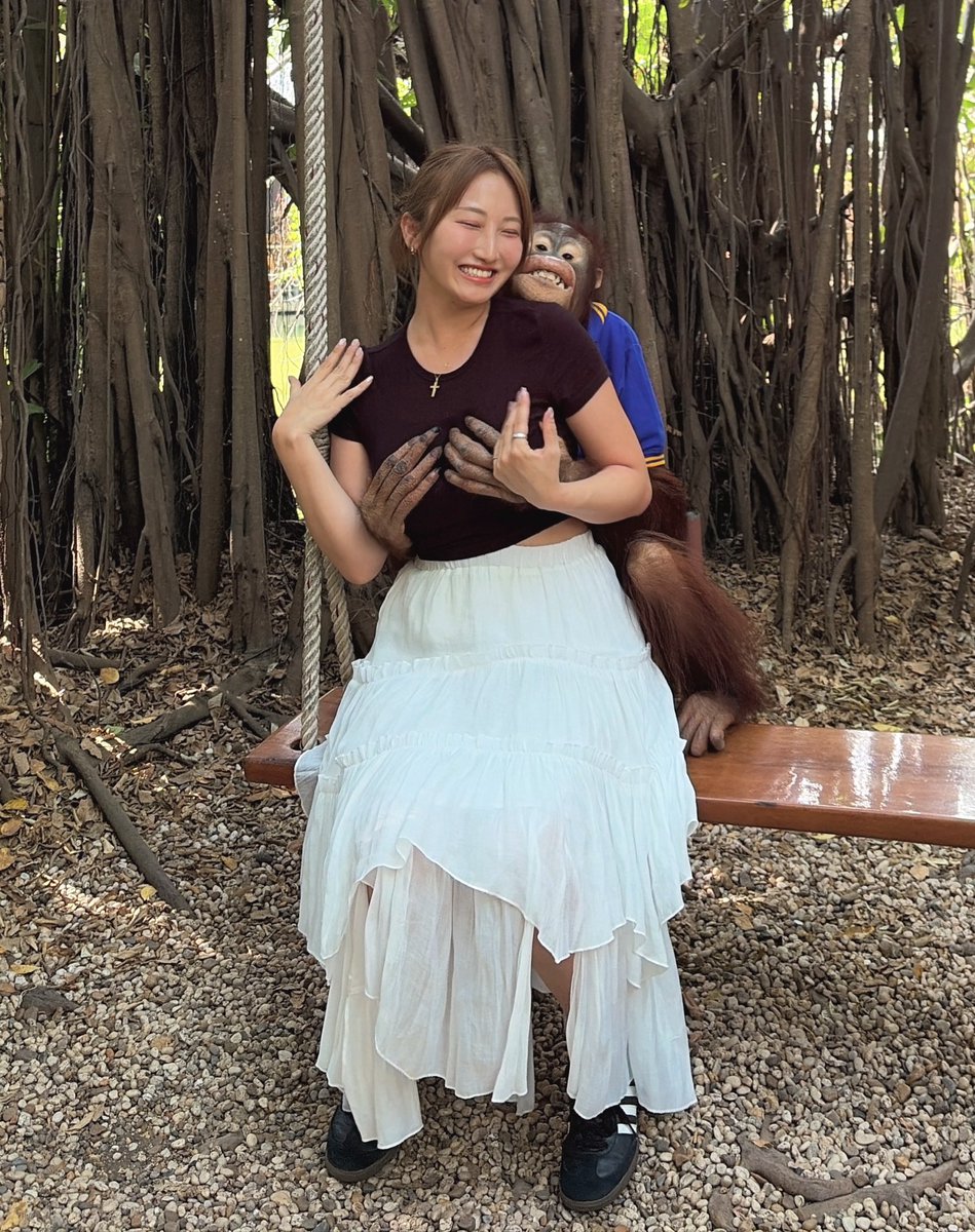 さらに驚きなのはその“手”。オランウータンの両手は、熊谷の胸元をしっかりとホールドしていた。