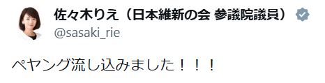 【衆院選】応援の元グラドル維新参議員の「選挙メシ」にツッコミ殺到も返信ラッシュ「湯ぎり…」 - 政治 : 日刊スポーツ日本維新の会の佐々木理江参院議員(43)が衆院選(2月8日投開票)の応援中に投稿した「選挙メシ」ポストが話題となっている。佐々木氏は29日昼に「ペヤング流し込… - 日刊スポーツ新聞社のニュースサイト、ニッカンスポーツ・コム(nikkansports.com)※関連スレ