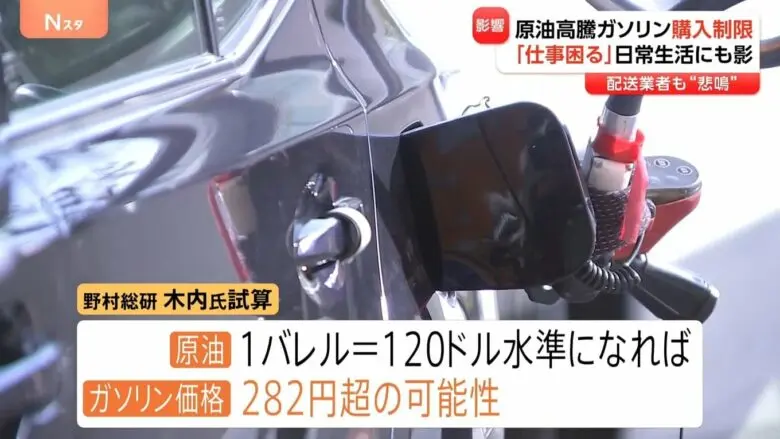 1: お断り ★ 2026/03/09(月) 22:02:58.08 ID:1J/oQrBc9ガソリンスタンドで「購入制限」1リットル282円超の試算も 運送業界「200円いったらもうもう…」 イラン情勢で原油高騰