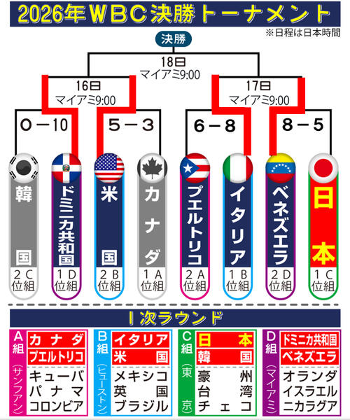 侍ジャパンが4強入りを目指しベネズエラと対戦。5-8で敗れ連覇を逃した。1次ラウンドで米国、メキシコを破り波に乗るイタリアはプエルトリコを8-6で破り初の4強… - 日刊スポーツ新聞社のニュースサイト、ニッカンスポーツ・コム(nikkansports.com)