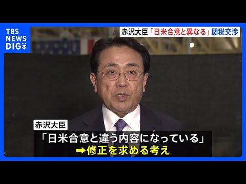 日米の関税交渉を担当する赤沢大臣は、アメリカの官報に記載されている内容が日米合意と異なるとして、修正を求める考えを示しました。