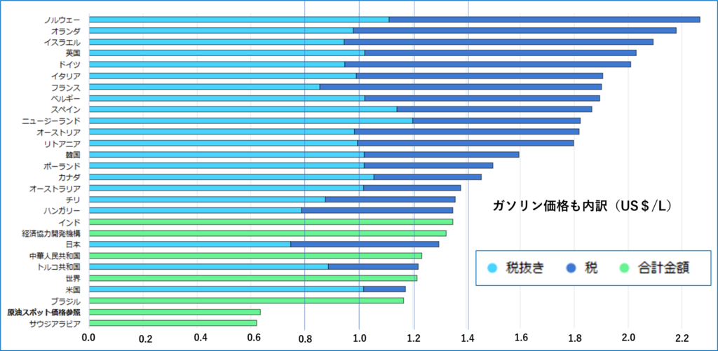 世界のガソリン価格 英国 1L=300円 中国・香港 1L=600円 日本 1L=170円