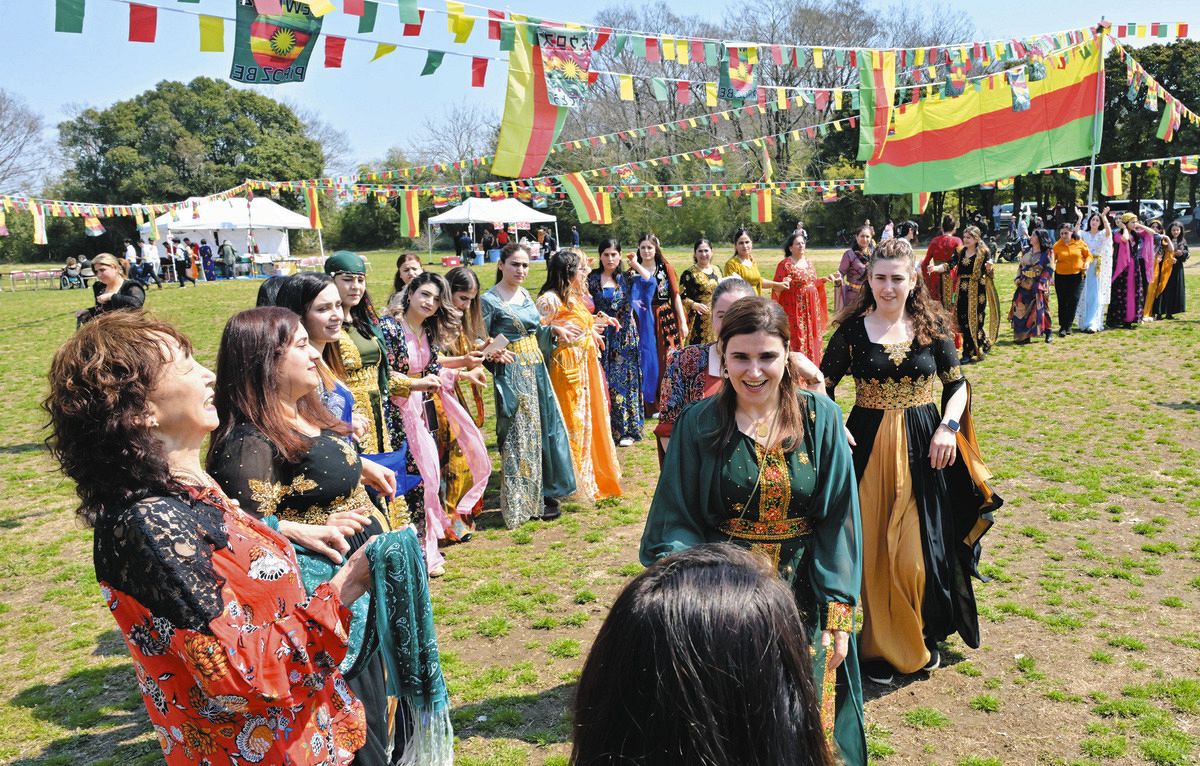 埼玉県南部に多く暮らす中東の民族クルド人が22日、さいたま市の県営秋ケ瀬公園でクルドの新春を祝う祭り「ネウロズ」を開いた。約1500人が集まり、民族衣装姿で輪になって踊った。