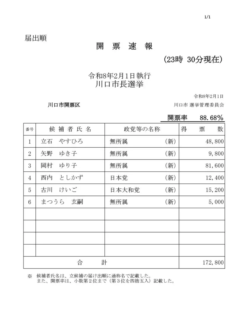 川口市民ちゃんと考えて投票したんだな