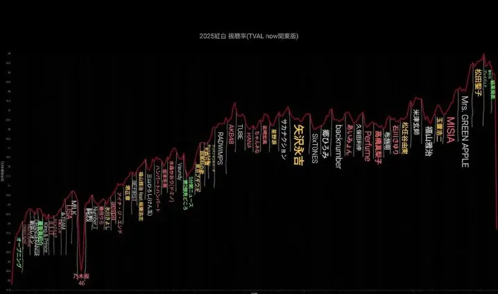 1: 阿弥陀ヶ峰 ★ 2026/01/06(火) 05:42:53.11 ID:Xfqdngod9昨年大みそかの「第76回NHK紅白歌合戦」(後7・20~11・45)の歌手別視聴率が5日、判明した。世帯視聴率の瞬間最高1位は“究極の大トリ”として出場した松田聖子(63)の39・9%(関東地区、ビデオリサーチ調べ)。番組全体では白組の優勝が発表された午後11時44分の40・7%で、5年ぶりに40%台を記録した。