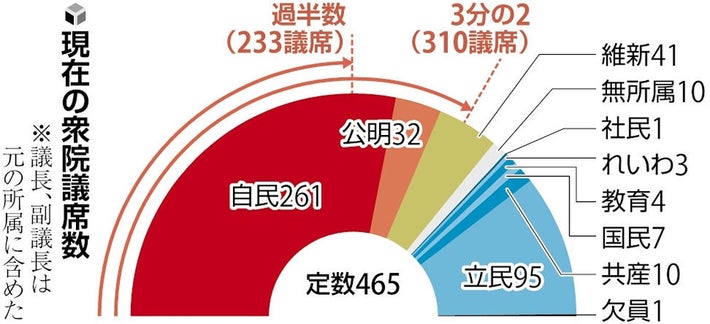 衆院選は定数465(小選挙区289、比例代表176)を争う。現職(引退を表明した1人を除く)と各党の公認候補となる選挙区支部長らを集計した立候補予定者は選挙区658人、比例45人(選挙区との重複立候補を除く)。衆院議員は10月に任期4年の折り返しを迎える。