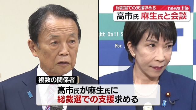 自民党総裁選挙に立候補している高市前経済安保担当相が30日夕方、麻生太郎最高顧問と会談しました。高市氏が麻生氏の事務所を訪れ会談はおよそ20分間行われました。複数の関係者によりますと、高市氏が麻生氏に対して総裁選での支援を求めたという事です。