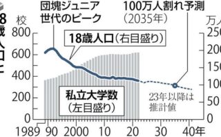 私立大の約4割、2040年に経営破綻の危険性 文部科学省の推計で判明
