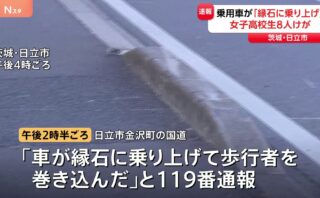 70代運転の乗用車、歩道に乗り上げ女子高生8人巻き込む事故…日立