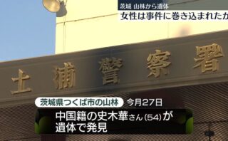 【茨城】つくばの山林女性遺体 死因不詳も窒息死の疑い 殺人事件として捜査 昨年12月に行方不明 土浦市の中国籍女性(54)