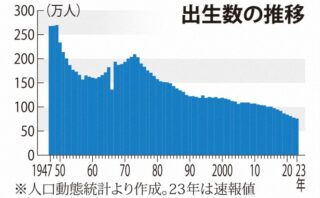 25年1~11月出生数64万人 2.5%減、通年で最少も